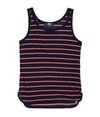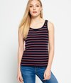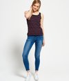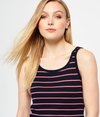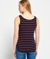Débardeur femme de plage décontracté Superdry. Débardeur rayé à col rond en maille côtelée. Le débardeur porte une étiquette logo Superdry au-dessus de l'ourlet.