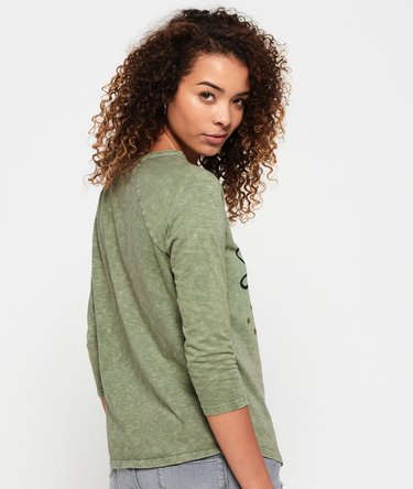 Haut clouté à manches raglan Superdry Femme. Manches raglan, détails cloutés sur le devant et logo Superdry sur la poitrine. Col à effet vieilli et badge Superdry au-dessus de l'ourlet.