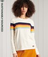 Idéal à superposer, le haut rayé à manches longues Cali possède un col ras du cou côtelé, un motif rayé et un badge signature.