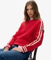 Un ajout classique à votre garde-robe confortable. Le pull en maille rayé coupe décontractée présente un design magnifiquement automnal, avec un tissu en maille somptueuse et des rayures contrastées sur les manches. C'est la pièce parfaite pour superposer vos tenues pendant les saisons froides.