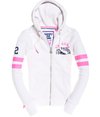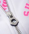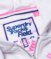Sweat à capuche zippé Track & Field Superdry Femme. Capuche à cordon, logo Superdry Track & Field à effet craquelé sur la poitrine et bande à effet craquelé sur les manches. Deux poches à l'avant, poignets et ourlet côtelés. Étiquette sur le poignet.