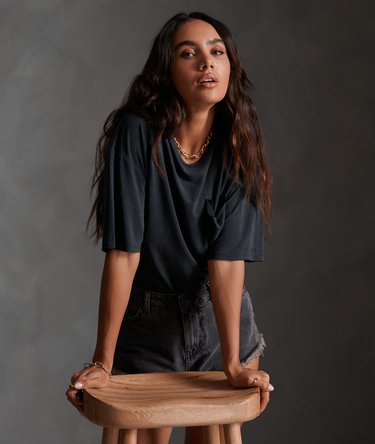 T-shirt à poche Canyon Essential Superdry Femme. Col ras du cou côtelé, manches courtes, poche poitrine unique et coutures latérales fendues. Étiquette Superdry sur l'ourlet.