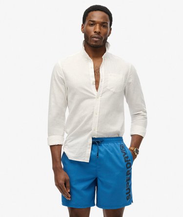 Opte pour une allure sportive et pleine de confiance avec le short de bain à motif Sport longueur 43 cm et affiche un style Superdry audacieux, dans l'eau et ailleurs. Pratique mais jamais ennuyeux, il est indispensable à ta garde-robe estivale.