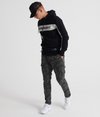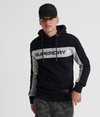 Sweat à capuche Trophy Superdry Homme. Sweat classique avec capuche à cordon, poche kangourou, ourlet et poignets côtelés, empiècements à l'avant et logo Superdry texturé. Imprimé graphique sur une manche et étiquette Superdry sur la poche.
