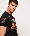 T-shirt à écusson et imprimé éclaboussures Work Shop Superdry Homme. T-shirt à encolure et manches côtelées avec grand imprimé graphique Superdry sur la poitrine et une sélection de badges appliqués. Imprimé intégral effet éclaboussures de peinture.