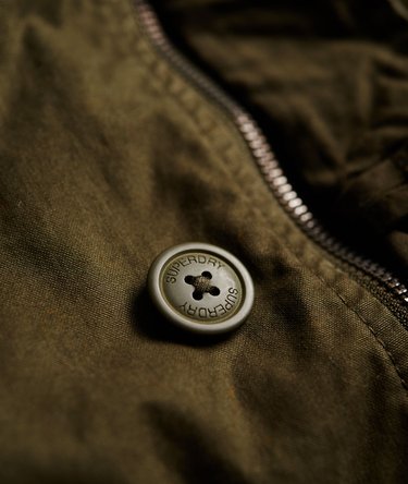 Parka homme Superdry Rookie Heavy Weather. Veste type parka avec capuche doublée polaire bordée de fausse fourrure amovible, fermeture zippée sous patte de boutonnage et quatre poches devant fermées par bouton-pression.. La parka est entièrement doublée et possède une poche intérieure et un cordon de serrage à la taille. La parka Rookie Heavy Weather porte une étiquette drapeau Superdry au-dessus de la poche zippée sur la manche et une étiquette logo Superdry sur la poche avant.