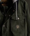 Veste camionneur à capuche en toile Hacienda Superdry Homme. Fermeture principale zippée et à boutons-pression, quatre poches, poignets à boutons-pression, col en velours côtelé et capuche amovible zippée à cordon. Écusson Superdry sur une poche poitrine.